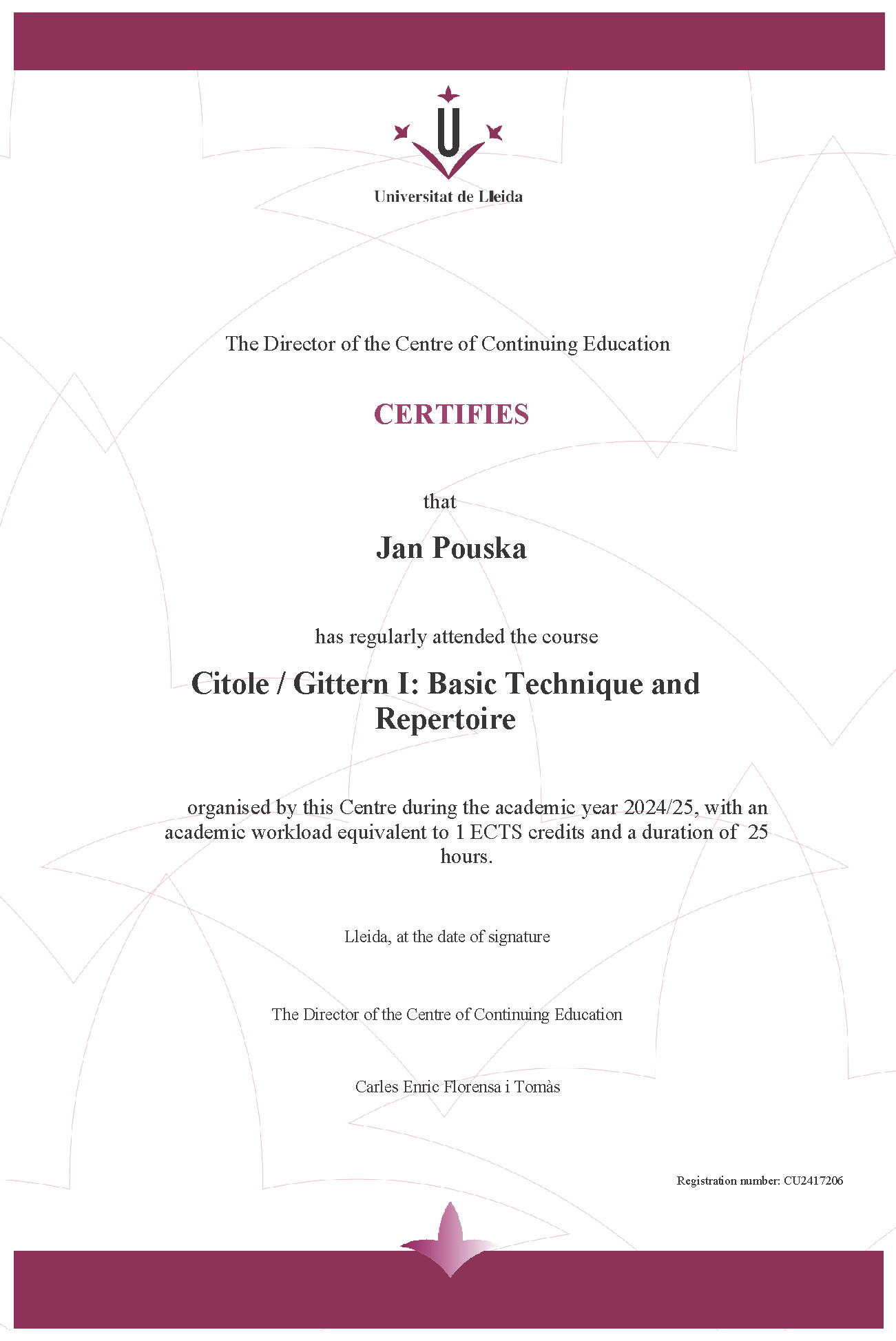 zpěv, loutna, kvinterna, cistra, niněra, varhanní portativ, cimbálek